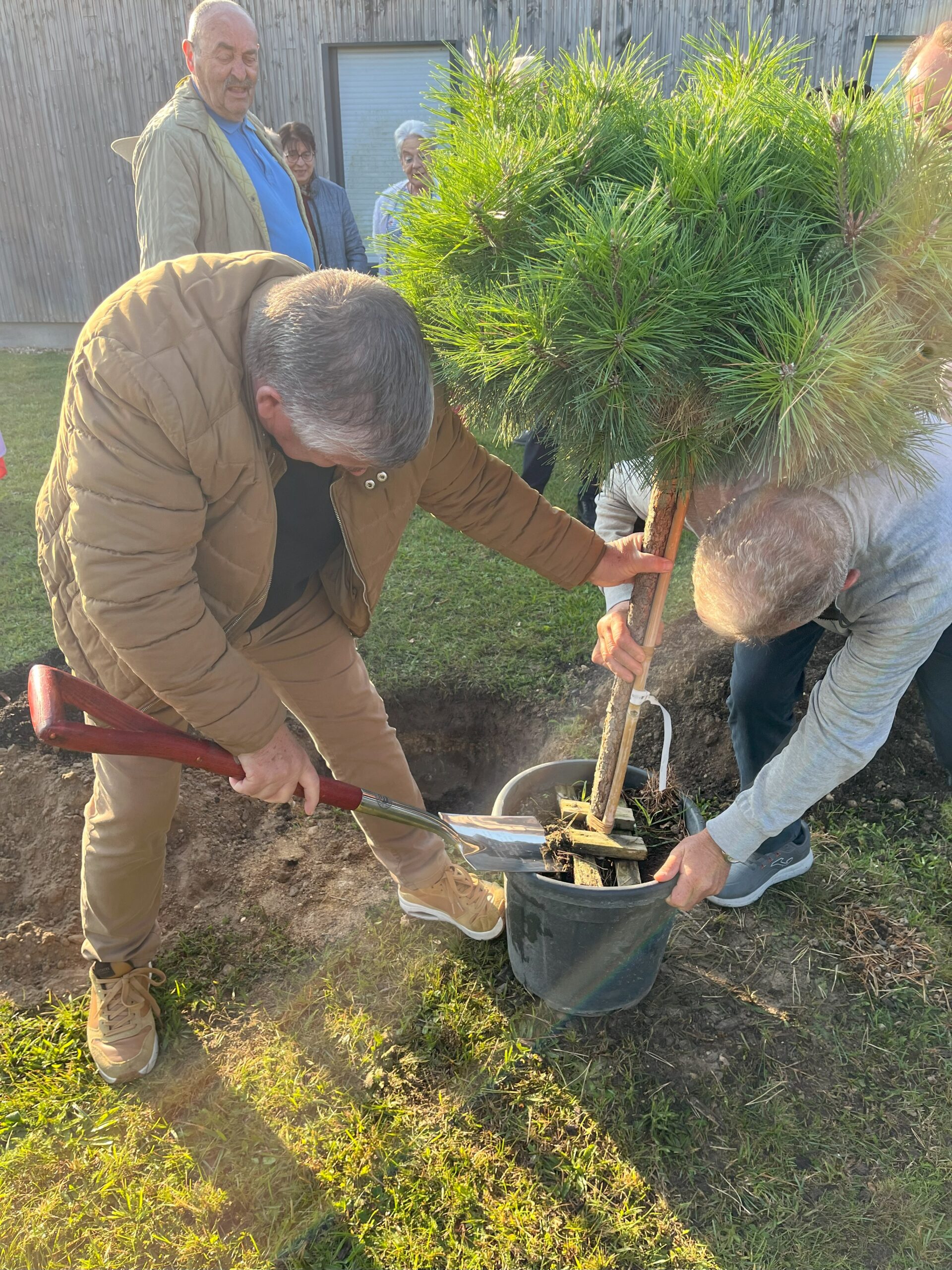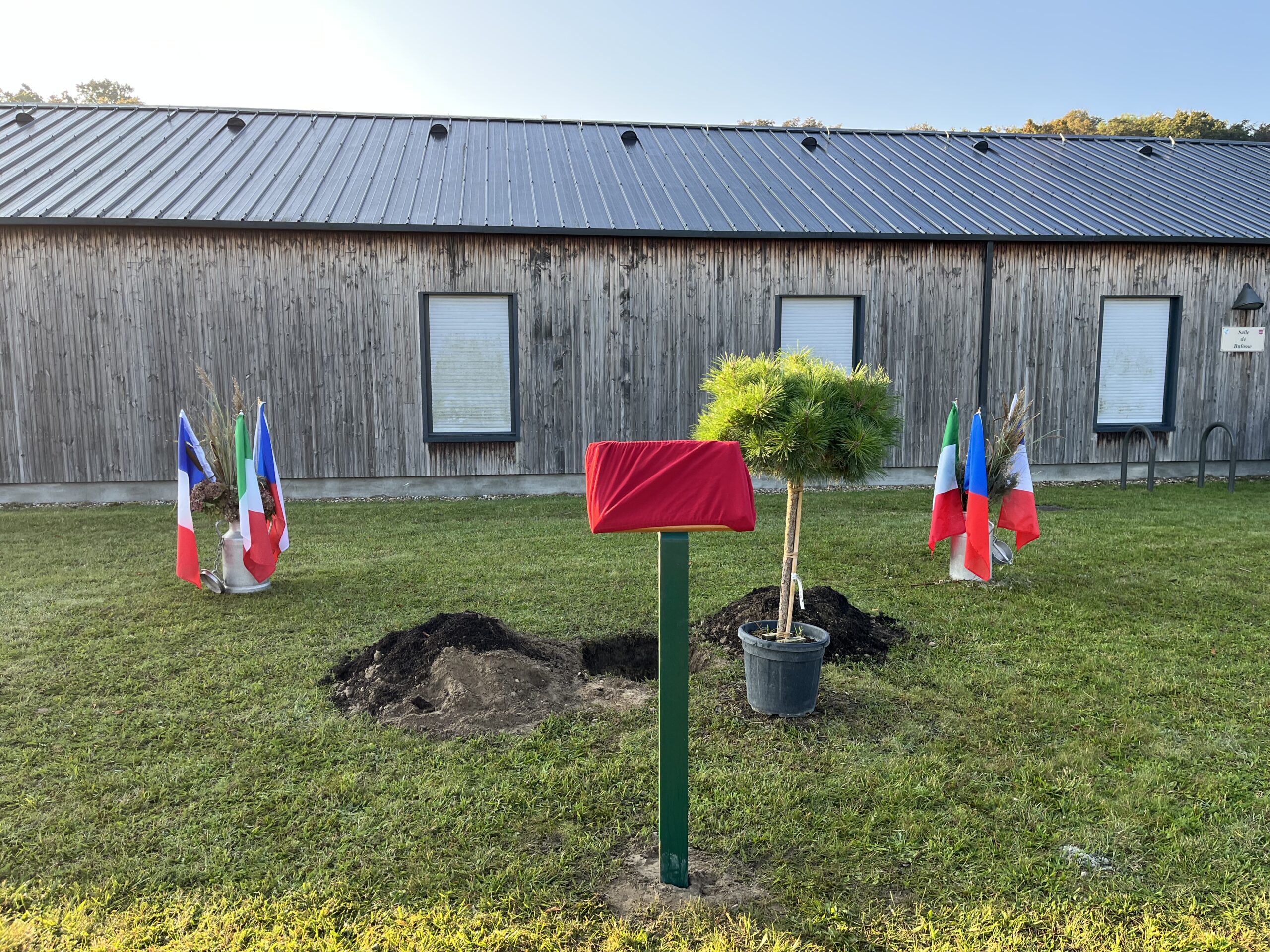 🟢Lundi matin : plantation symbolique d’un pin noir au complexe des Aulnes, avant le départ des deux délégations.