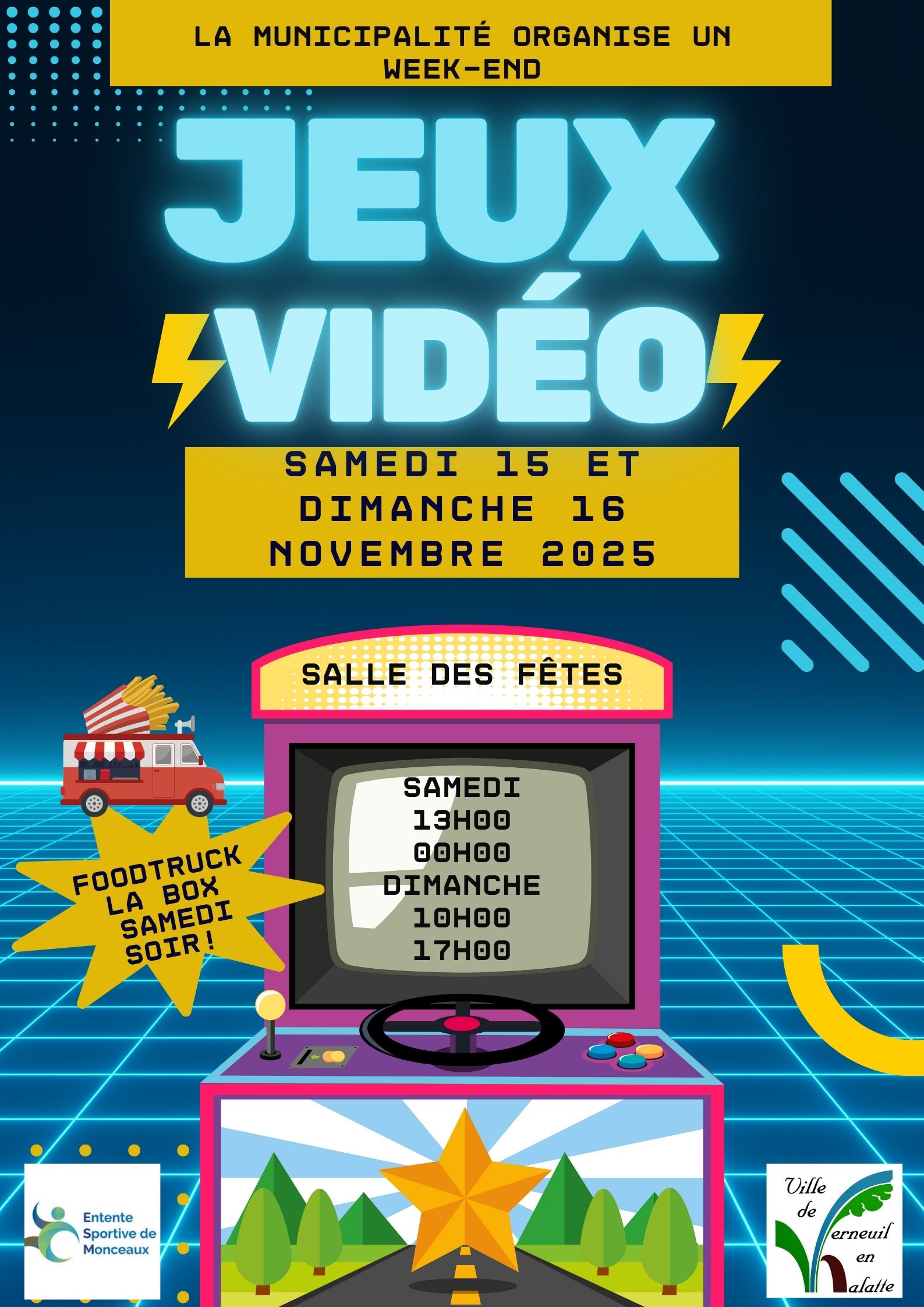 La municipalitĂ© vous donne rendez-vous pour un week-end 100 % gaming Ă la salle des fĂȘtes, les samedi 15 et dimanche 16 novembre 2025 !