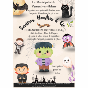 La Municipalité donne rendez-vous aux petits Vernoliens de 3 à 11 ans pour une après-midi festive spéciale Halloween 🎈 🕓 Dimanche 26 octobre 2025 à la salle des fêtes – Place de Piegaro 🧙♀️ Dès 14h00, séance de maquillage😱 À 15h00, place au spectacle “Panique au manoir” ! Une belle occasion de venir déguisés, de […]